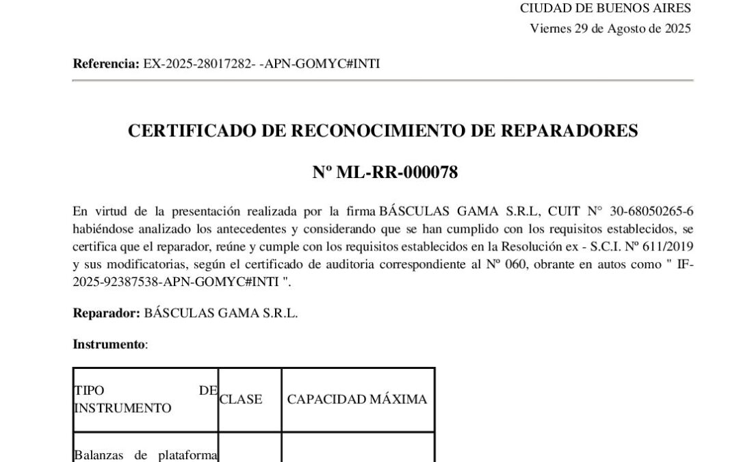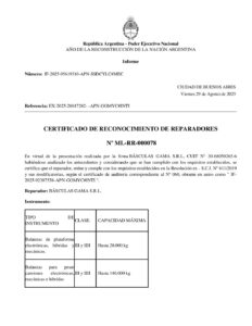 Certificado Reconocimiento de Reparadores SIC (Vto 08-08-2026)